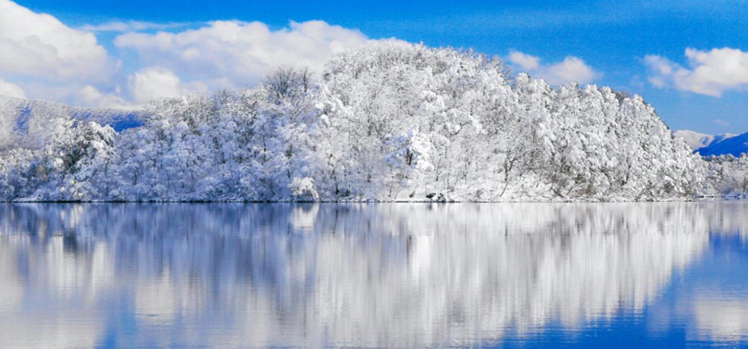 Many lakes, including Goshikinuma, were born in the 1888 eruption of Mt. Bandai. Lake Hibara, which has the largest and most beautiful islands, shows a mysterious and magnificent appearance in each season. The fresh green season of early summer is also popular, but the scenery of colorful tents where you can enjoy smelt fishing on a frozen lake is one of the winter traditions.