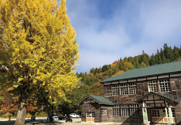 A facility that has been renovated from a wooden school building built in 1945. It is a popular spot where the large ginkgo tree towering in the schoolyard and the surrounding landscape are in harmony.