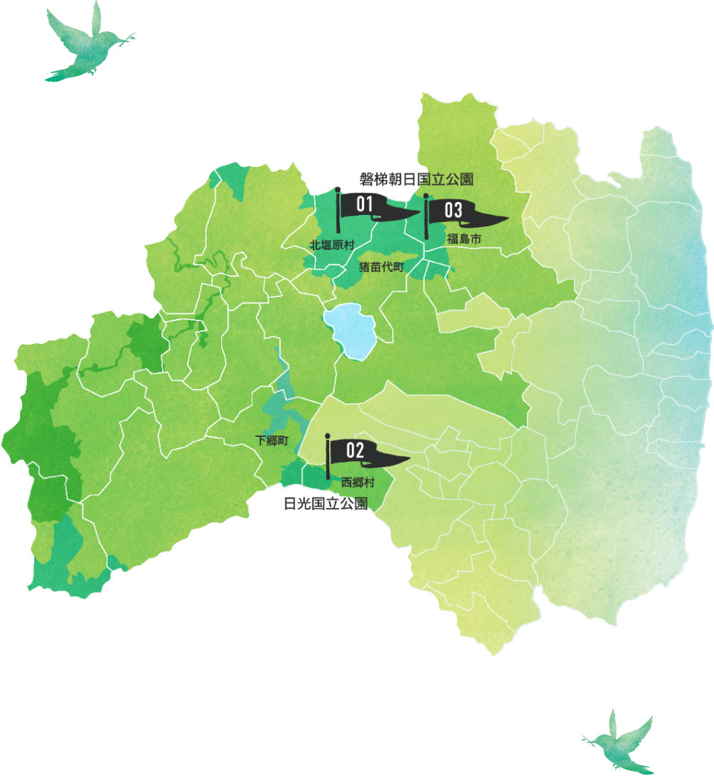 ふくしまの自然公園は、豊かな自然環境に恵まれ、雄大な景観や自然との共生の中で育まれた歴史・文化、温泉などの地域資源を数多く有しています。