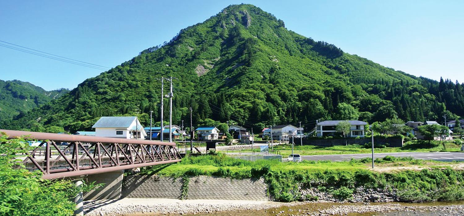只見町にそびえ立つ標高828mの鋭峰。低いながらも険しく尖った形から「会津のマッターホルン」と呼ばれています。山頂から望む雄大な山々、山の西側のブナ林などフォトジェニックな景色満載のスポット。また、エキサイティングな登山、森林浴も楽しめ、湧き水、風穴など様々な要素が揃っています。