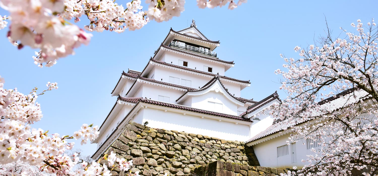 鶴城(會津若松城)是會會津若松市的象徵,是舊幕府軍與新政府軍交戰的“戊辰戰爭”的舞台之一。重建以恢復德川後期的外觀此外,近年來,在已上釉的紅色屋頂瓦片上它被重新屋頂。從the望台可以眺望堆積有天然石材的“ Nozuratsumi”的石牆和城堡塔樓,是一個絕佳的視角。