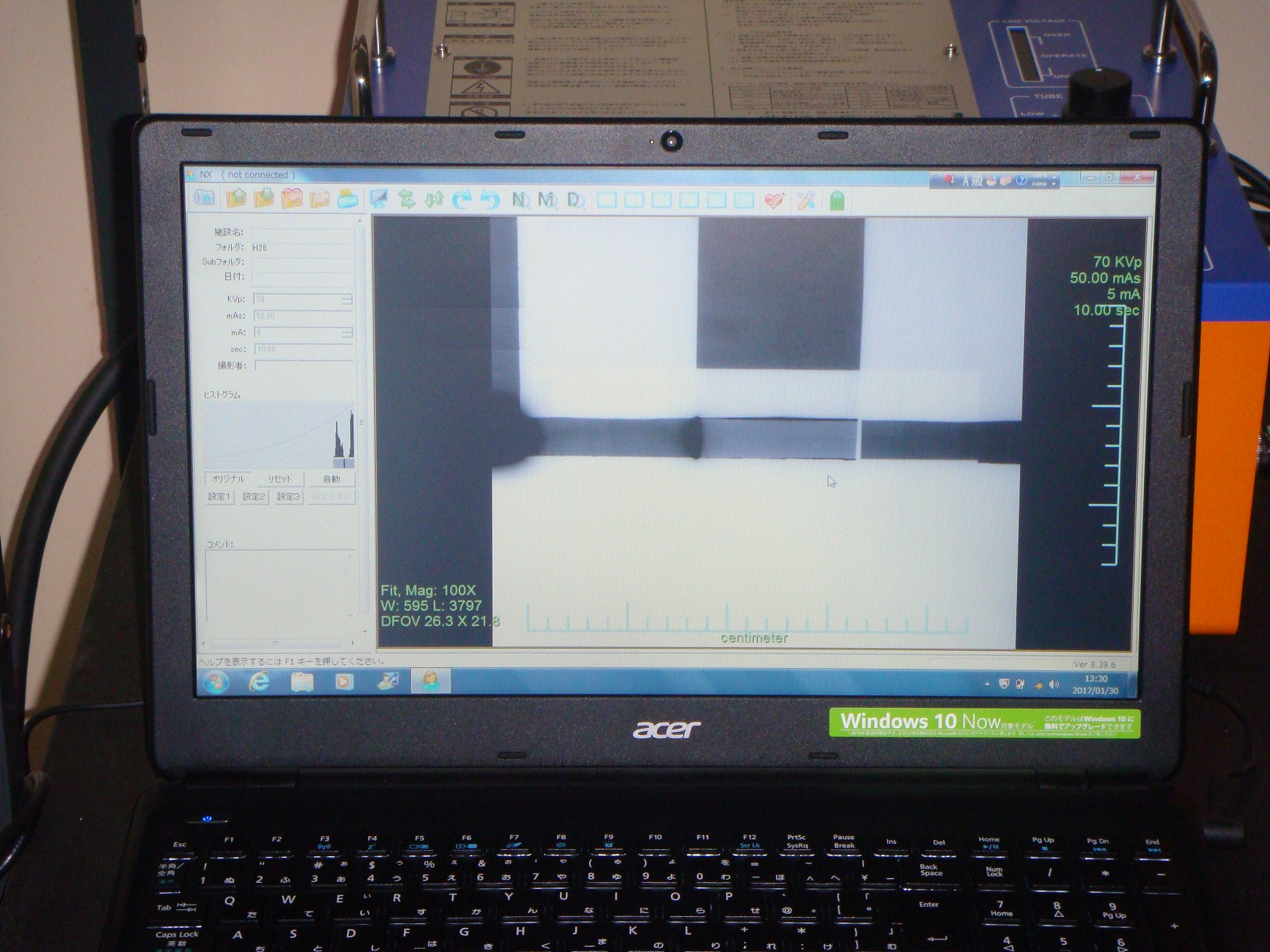 - CCD画素ピッチ 水平7.2μm×垂直5.6μm読み取り画素数 1,814万画素撮影サイズ 206mm×254mmデータ形式 DICOM/BMP/JPEG/TIFF/PNG/GIFX線管電圧 70kV〜200kV
