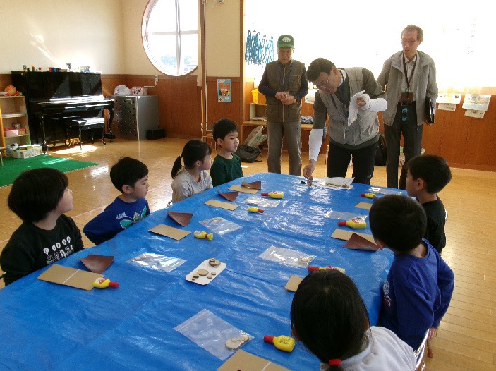 もりの案内人さんの説明を聞いています。