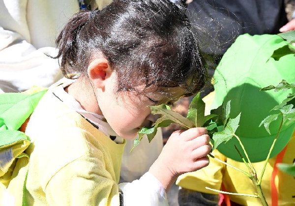 「この葉っぱはどんなにおいがするのかな?」
