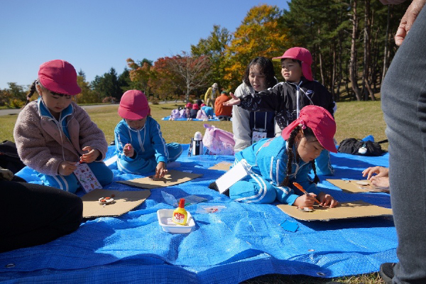 〇葉っぱや木の実を手に取り、感触や香り、形をよく見て「ツルツルしてる」「キノコからなんか出てる」などと五感を使って大自然を堪能することができていた。普段味わうことのできない体験に、子どもたちは大興奮だった。