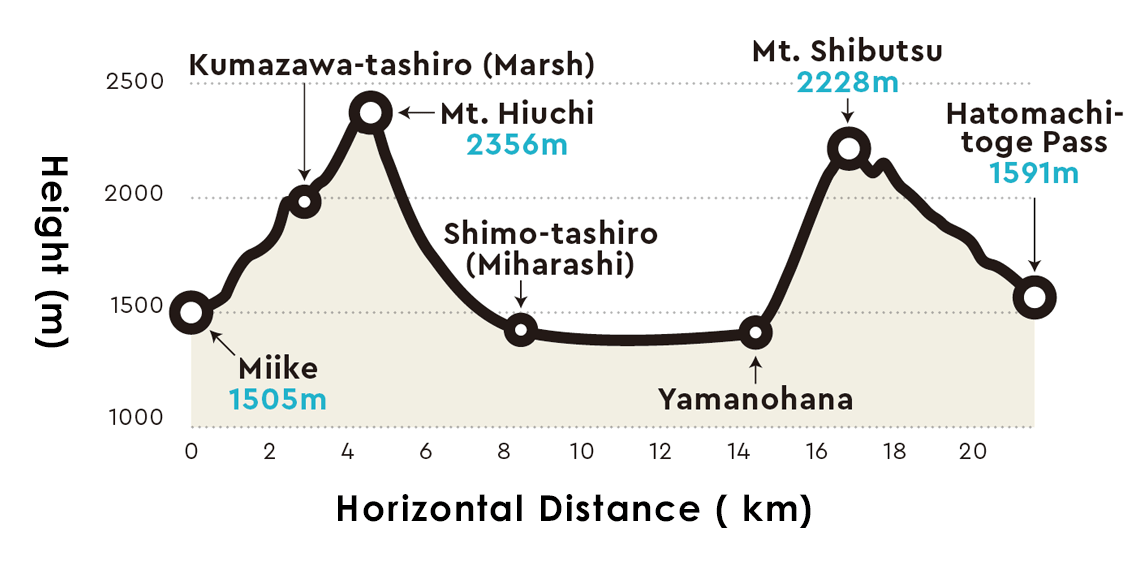 - Day 1 Miike to Mt. Hiuchi to Shimo-tashiro (Miharashi) 6hr