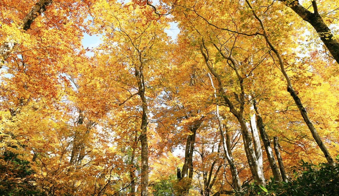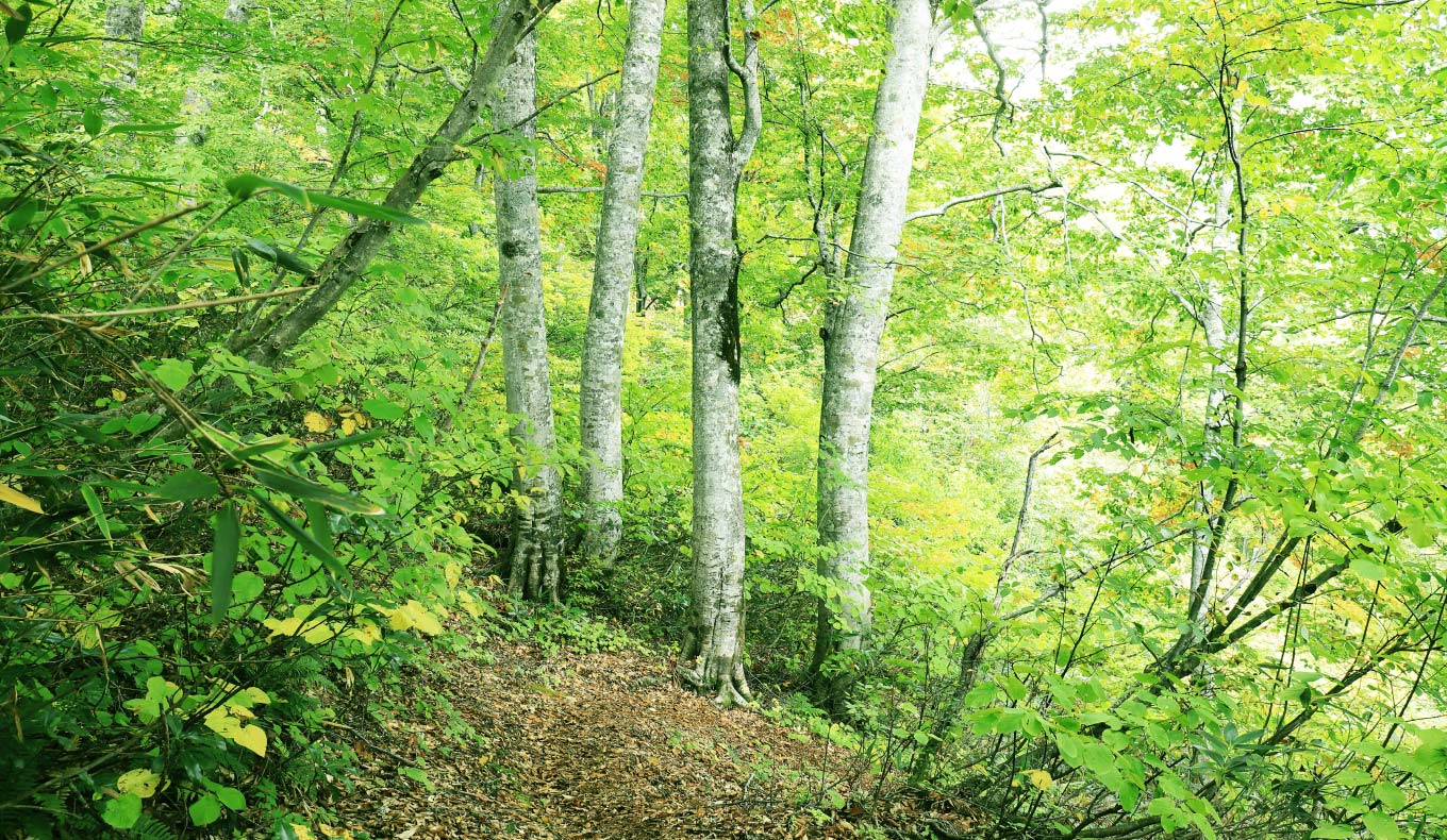 大津岐峠から標高差900メートル一気に降りてキリンテ登山口へ下山となります。足の疲労が心配になりますが、じつはこの登山道は落ち葉でふかふかの歩きやすい道です。ブナやトチの原生林の森林浴を楽しみながら快適な下山となるでしょう。