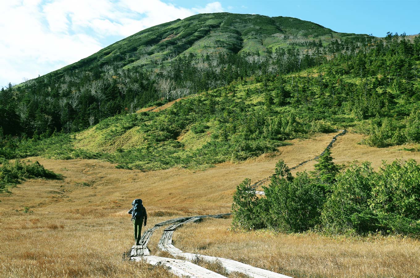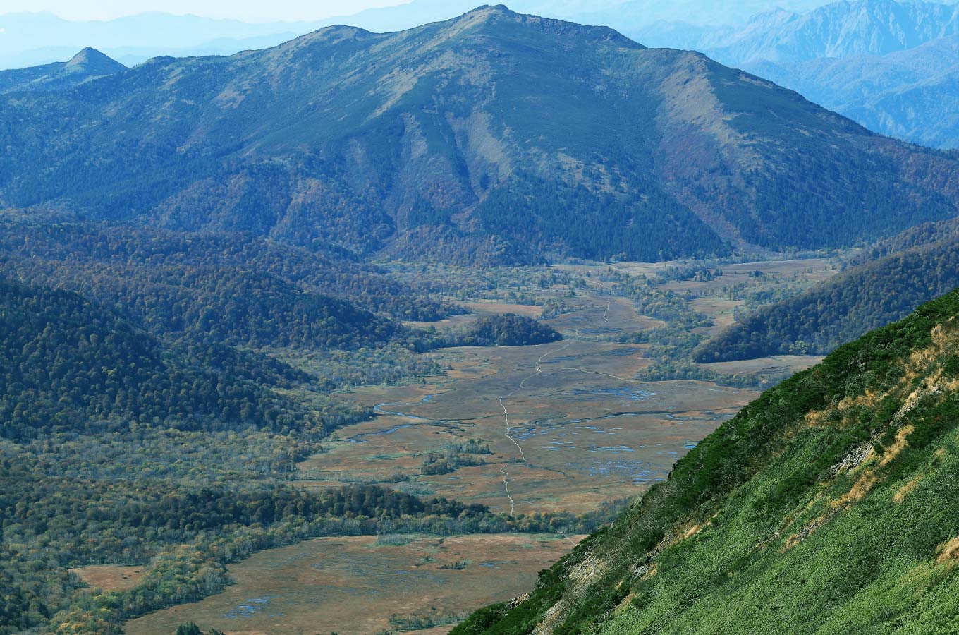 尾瀬屈指の景観美を誇る熊沢田代を経て、トラバース、沢筋の急登と手応えのある登山を楽しみながら登頂する尾瀬最高峰の燧ヶ岳。2つの頂上からは四方すべての山嶺を見渡すことができます。