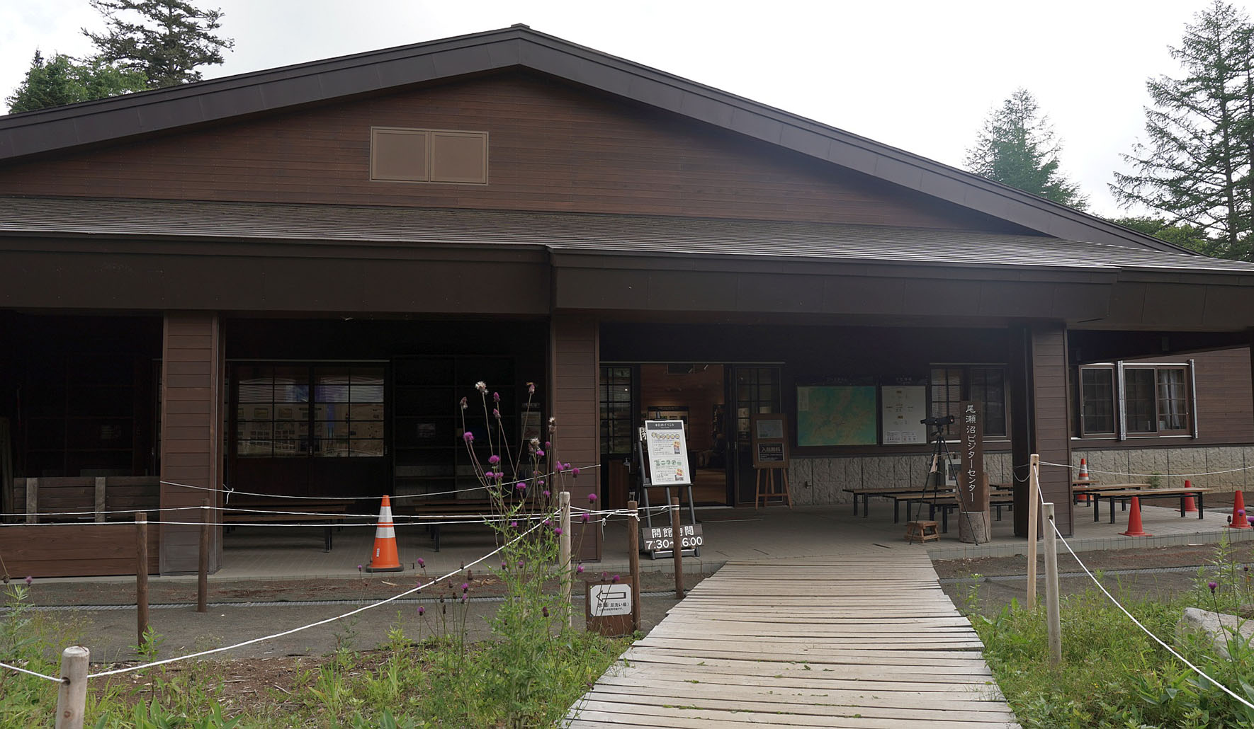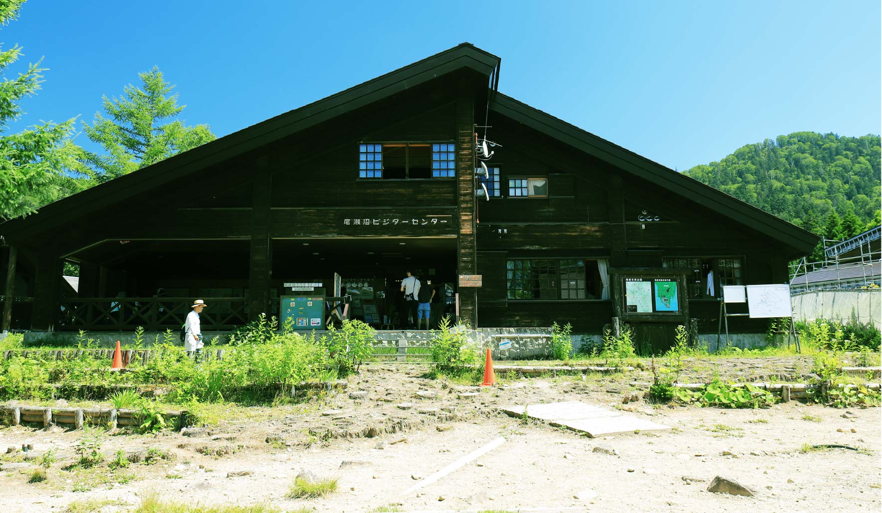 尾瀬沼東岸にある尾瀬沼ビジターセンター。シーズン中は職員が常駐し、尾瀬の自然についての情報提供を行っています。尾瀬国立公園内の最新情報が館内に掲示されておりますので活用しましょう。